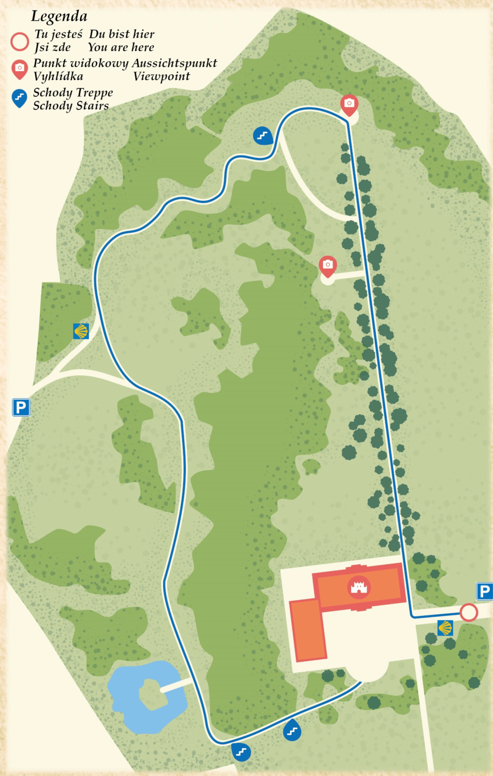 Na naučné stezce poznáte bohatství místní flóry a fauny. Autentické kresby z 19. století a ukázky z Eichendorffových děl Vám umožní spatřit tento kraj jeho očima.